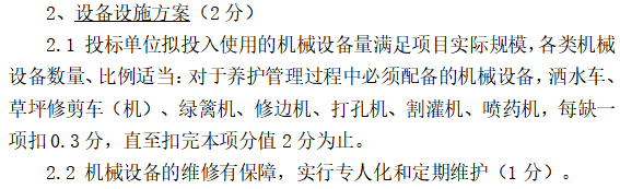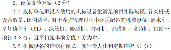 1、第五章“评标方法与评标标准”中“二、评标标准”之“技术部分”之“2、设备设施方案”