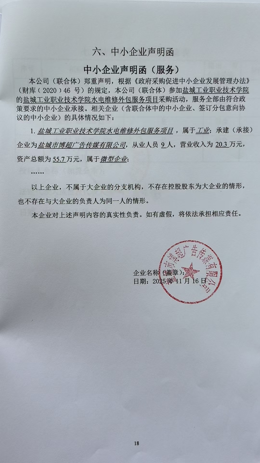 二、项目名称:盐城工业职业技术学院水电维修外包服务